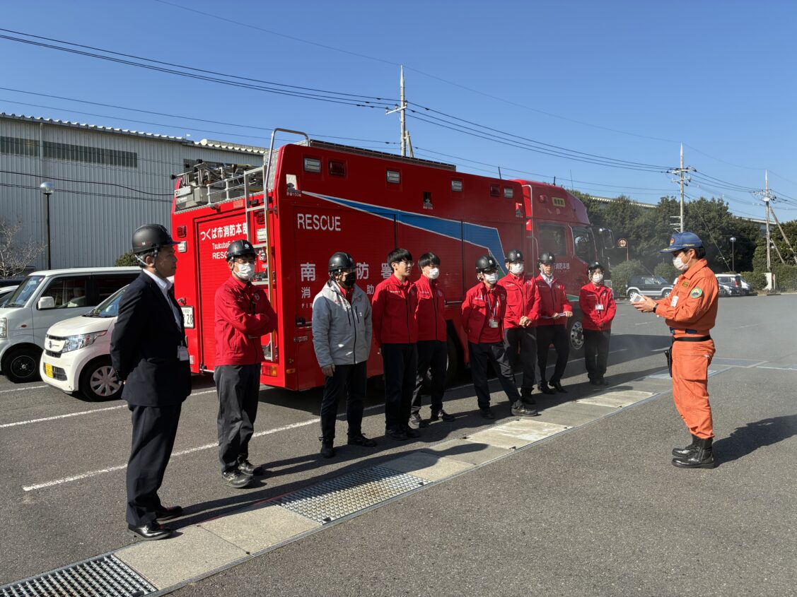 今回の訓練では、つくば南消防署の皆さまにご協力をいただき、センター内で火災が発生したことを想定した通報・避難訓練を行いました。さらに、「煙体験ハウス」を使用した実践的な訓練も実施いたしました。このような設備をお借りしての訓練は大変貴重な機会であり、非常に有意義な訓練となりました。